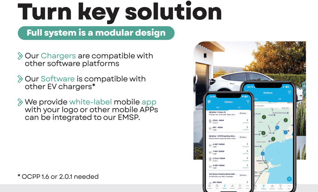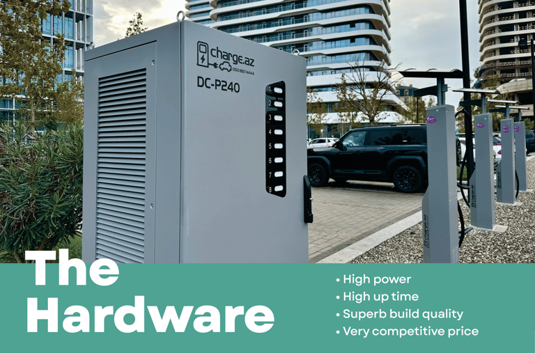 Using DC chargers, vehicles get the energy from the station directly into the battery. Our stations are rated up to 1000 Volts. Connectors are CCS1(USA), CCS2(EU), GB/T(China) and Chademo(Japan). NACS(Tesla) expected to be available on the stations on Q3, 2025.